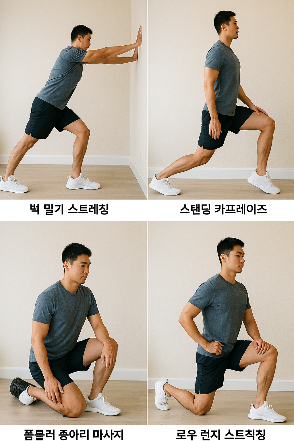 - 💆♂️ 마사지: 종아리 근육을 손바닥으로 부드럽게 주무르고, 소택혈(엄지발가락 바깥쪽 아래)을 눌러 완화.